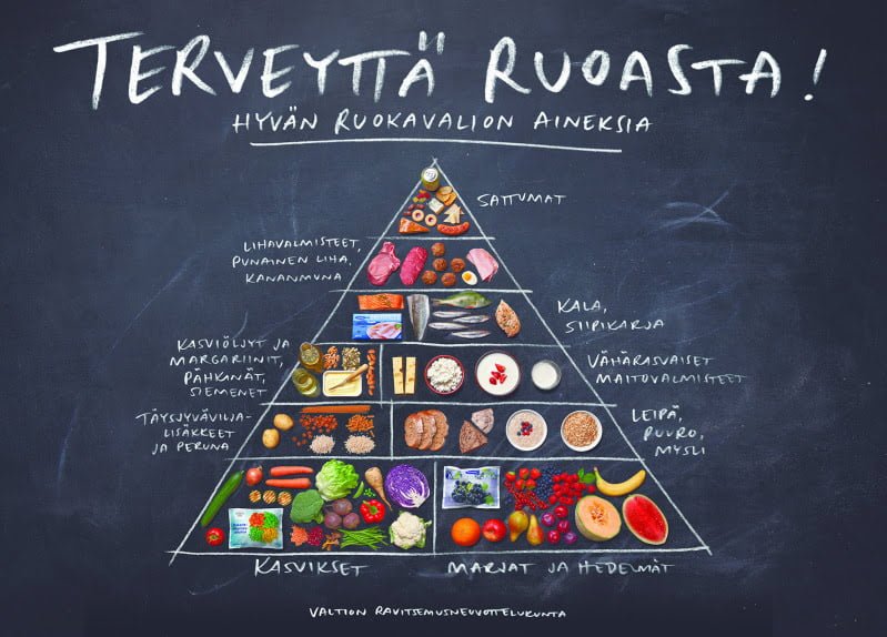 - Terveyskirjasto / Aro E, Heinonen L, Ruuskanen E. Ruokakolmio havainnollistaa ruokavalion kokonaisuutta.