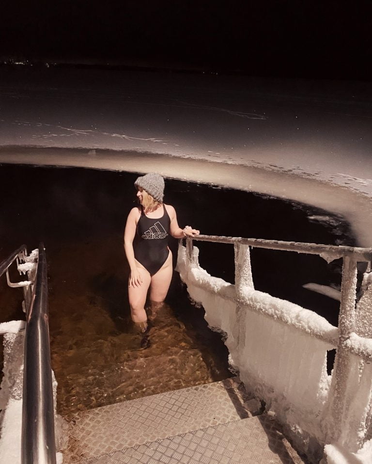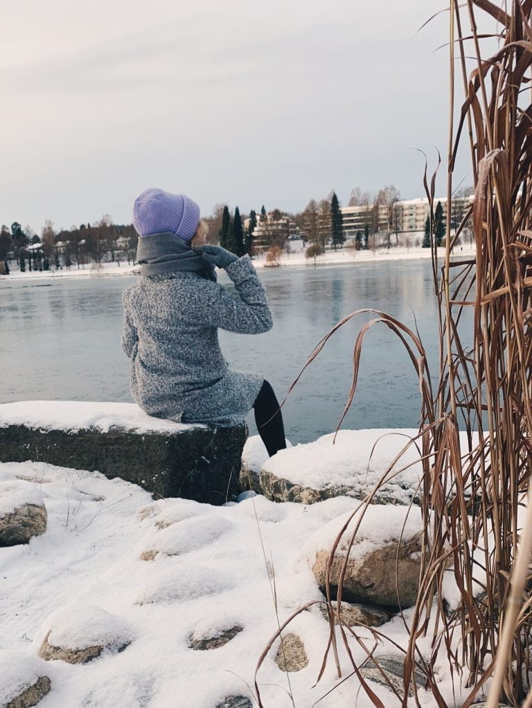 Kirpeä talvi-ilta. Aurinko on laskenut